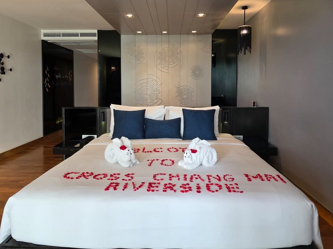 🎈 ผมจะพาทุกท่านไปเข้าพักที่ “ครอส เชียงใหม่ ริเวอร์ไซด์” รีสอร์ตริมแม่น้ำปิง ภายใต้เครือ 𝗖𝗿𝗼𝘀𝘀 𝗛𝗼𝘁𝗲𝗹𝘀 𝗮𝗻𝗱 𝗥𝗲𝘀𝗼𝗿𝘁𝘀 ตกแต่งสวยดีไซน์เรียบหรู ผสมกลิ่นอายล้านนา ห้องพักเพียง 29 ห้อง ทำให้มีความเป็นส่วนตัว สงบ สามารถมองเห็นดอยสุเทพและพระอาทิตย์ตก บรรยากาศดีมากครับ 🎊